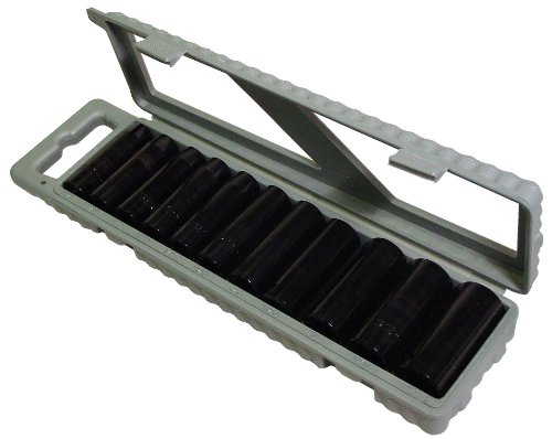 Ideal for professionals or home improvement enthusiasts, the PTA10 socket set from Porter-Cable comes with 11 chrome vanadium steel sockets in the following sizes: 10mm, 11mm, 12mm, 13mm, 14mm, 16mm, 17mm, 19mm, 21mm, 22mm, and 24mm. Each deep impact socket features a 1/2-inch drive, and has a smooth finish. For added convenience, this set comes with a carrying case for easy portability.